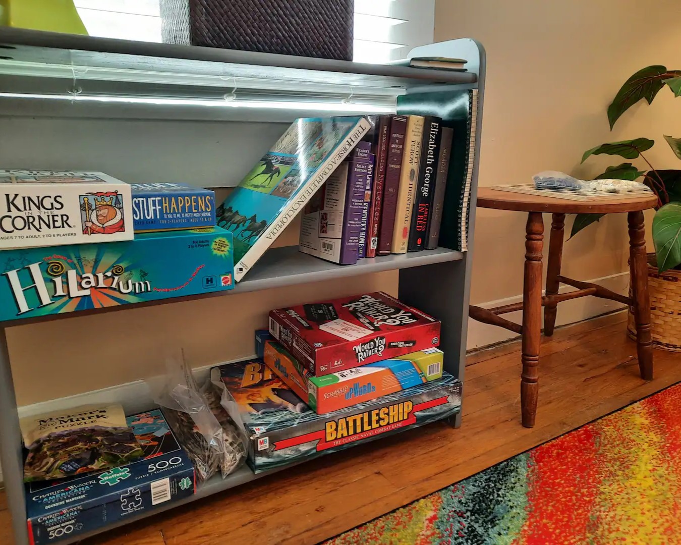 Living Room: 40" Roku TV, Xbox 360, books, board games, Anderson-opoly.